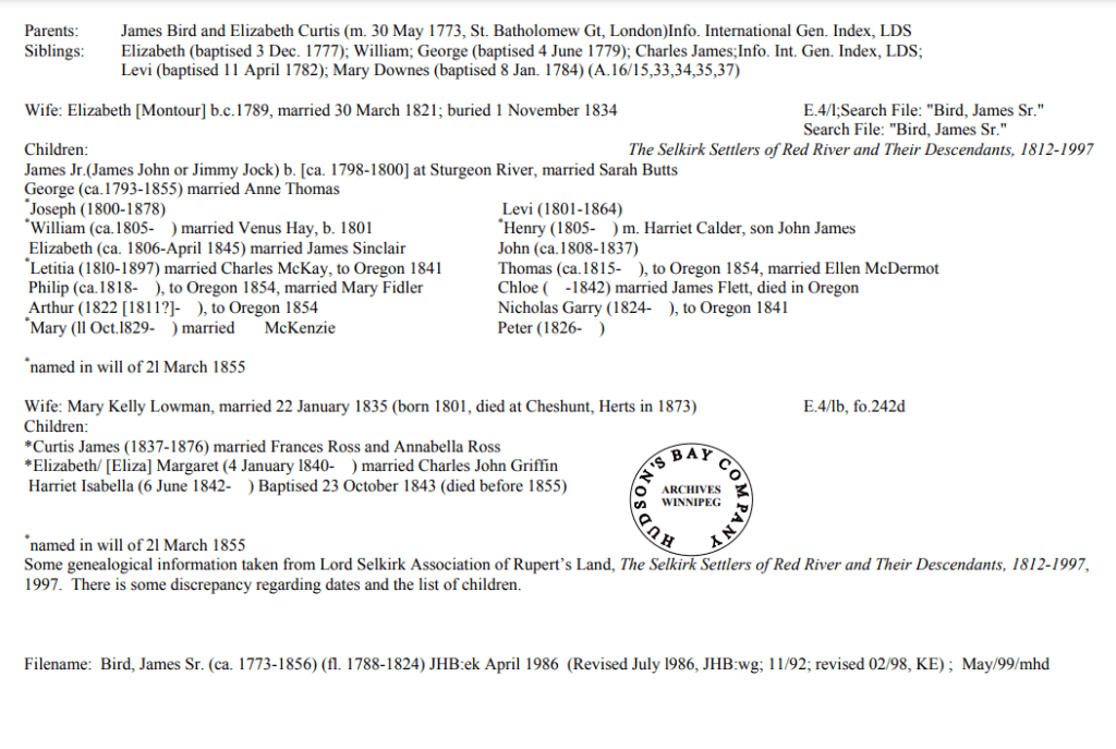 Below are a number of examples of biographical sheets of my family members. The majority of my family are from the HBC and as of yet I have not found any that were from the NWC but everyday more things get uncovered.